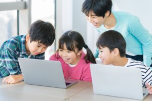 子どもたちがグループに分かれて世界遺産について学び、調べ、設計し、マインクラフトで建築。最後に完成した作品をみんなで発表します。それぞれの個性や能力が発揮できる機会を創出します。